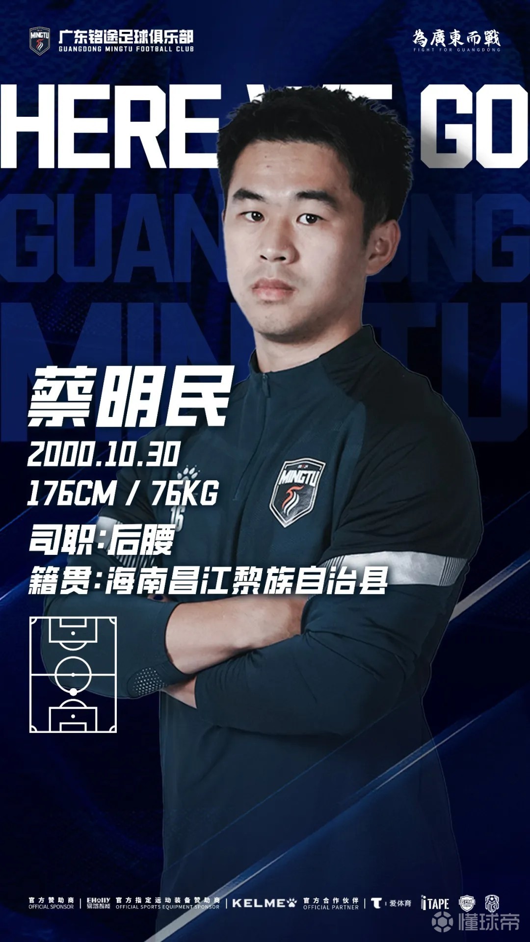官方:蔡明民加盟中乙广东铭途,出自恒大青训